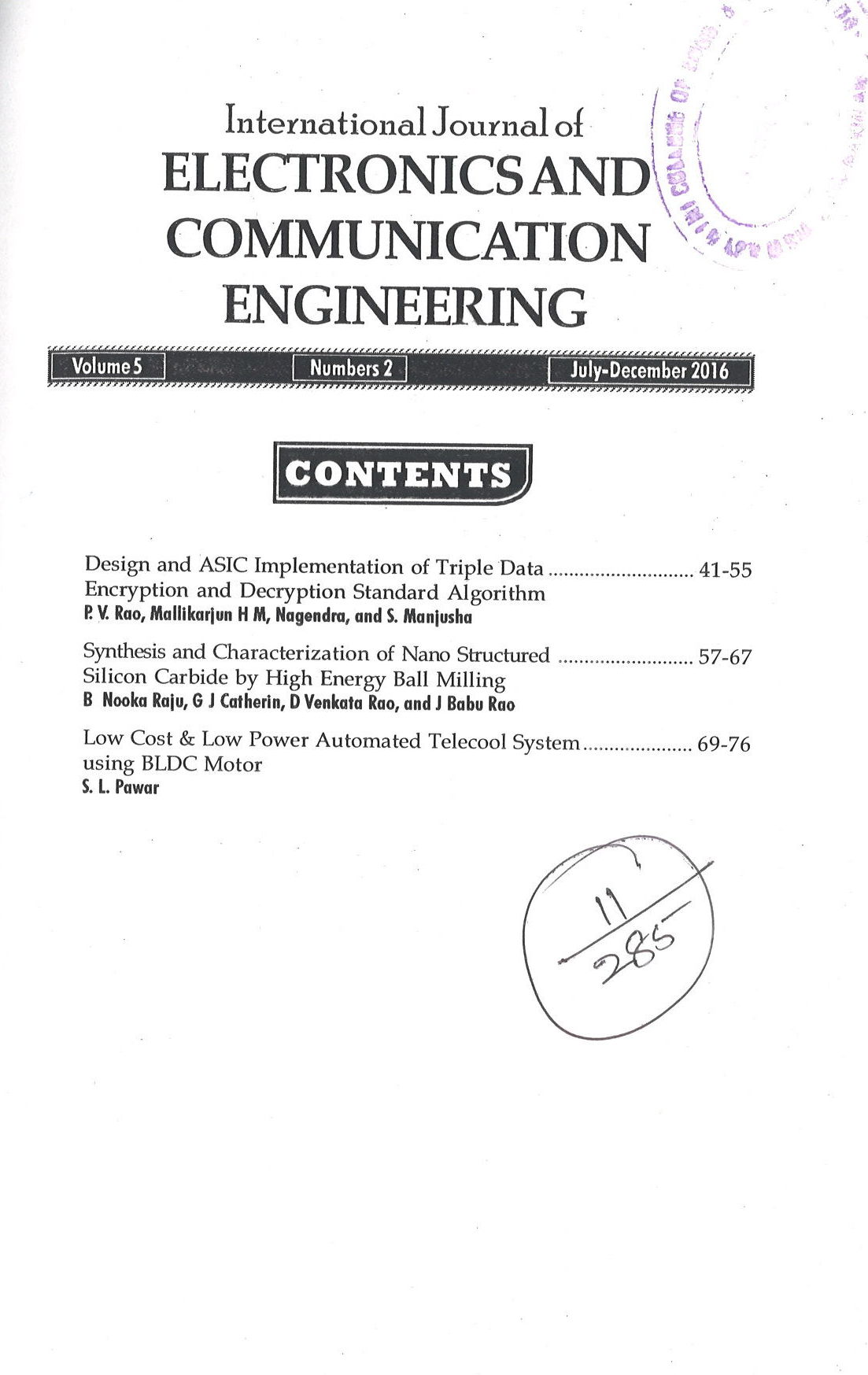 International Journal of Electronics and Communication Engineering